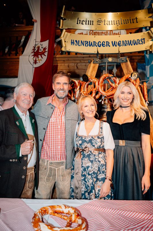 Zuvor hatte Arnold Schwarzenegger gemeinsam mit Sohn Christopher, Familie Hauser (Balthasar, Magdalena, Maria, Elisabeth, Johannes), Ralf Moeller, Jürgen Klopp, Verona Pooth, Lena Gercke, Pamela Reif, Sasha, den Skilegenden Fritz Strobl und Leonhard Stock sowie Metzgermeister Hans Holnburger den offiziellen Auftakt am Weißwurstkessel gestaltet. 2.800 Gäste, darunter viele Stammgäste und Freunde des Hauses, erlebten einmal mehr die „beste Weißwurstparty der Welt“, so ein bestens aufgelegter Arnold Schwarzenegger.