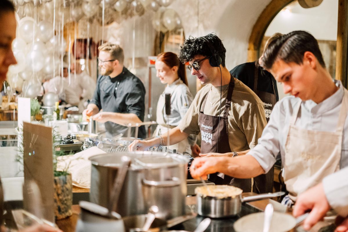 „Löffel & Glas“ ist auch ein Fest der Begegnung – und das zeigte sich besonders am späteren Abend, als sich die Küchen in Tanzflächen verwandelten. Das DJ-Duo „Bussi Baba“ brachte mit seinem feinen Gespür für Beats und Stimmung den Stanglwirt zum Beben. Zwischen Weingläsern und Kochstationen wurde getanzt, gelacht und gefeiert – bis weit nach Mitternacht.